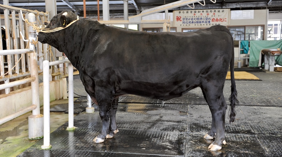 本牛は母系が有名な次郎系統で、下図のように曾祖母が花清国号という岐阜県の名種雄牛ときょうだいです。2代目が耕富士という珍しい血統です。きょうだい牛肥育成績は下の通りとても良い成績です。自身は資質系でありながら発育上限で、腹容・体の深みがあります。子出しは驚くほど良く、前産で子出しが控えめだった母牛からも、生時体重・その後の成長ともに良い牛が産まれています(初産は避けて頂く大きさです)。経産牛への交配・血統的には但馬系や藤良系への交配がおすすめです。産子は強健性があり、試験種付け時は子牛セリ出荷時の平均体重が全体平均より10~15kgほど重いという結果が出ました(詳細データあります)。子牛セリで目を引く大きさになります。令和9年夏頃から肥育成績が判明する予定です。